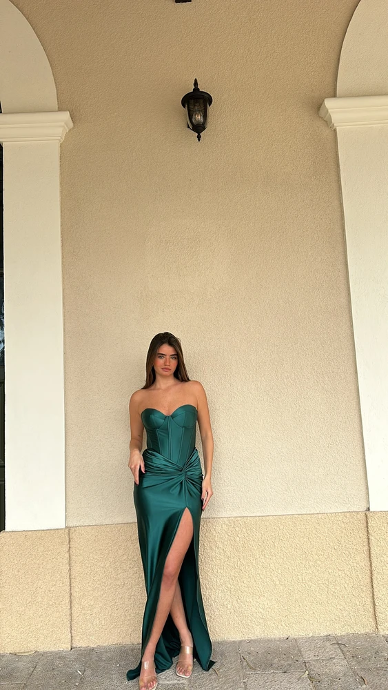 גזרת מחוך עם כאפים וסיבוב בחצאית עם שסע הורס
